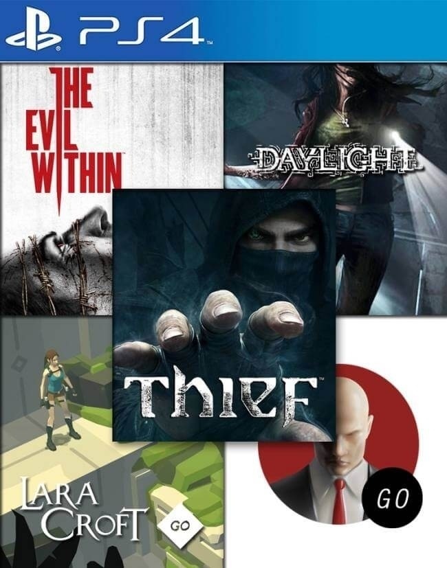 5 JUEGOS EN 1 THIEF MAS THE EVIL WITHIN MAS DAYLIGTH MAS HITMAN GO EDICIÓN DEFINITIVA MAS LARA CROFT GO PS4