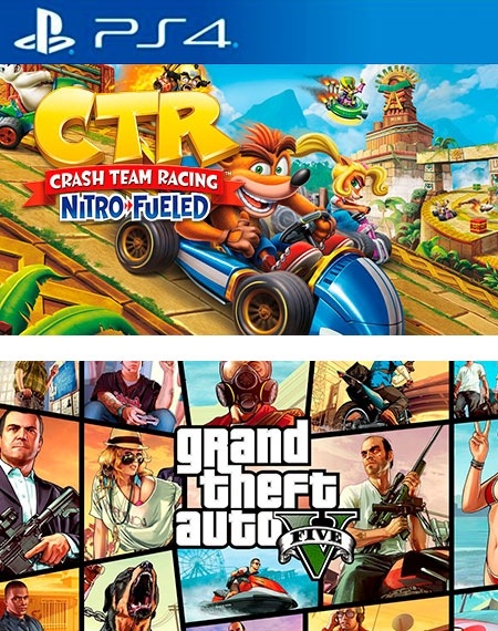 2 JUEGOS EN 1 Crash Team Racing Nitro Fueled mas Grand Theft Auto 5 (GTA V) GTA 5 PS4