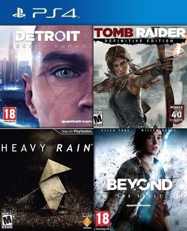 4 JUEGOS EN 1 Detroit Become Human mas Heavy Rain mas Beyond Dos almas mas Tomb Raider Definitive Edition PS4